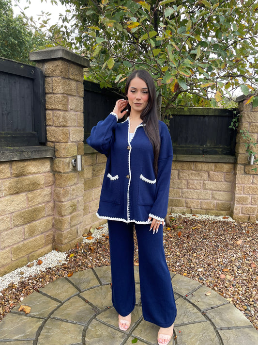 Verso Polo Neck Knitted Short Length Top & Trouser Co-Ord Set