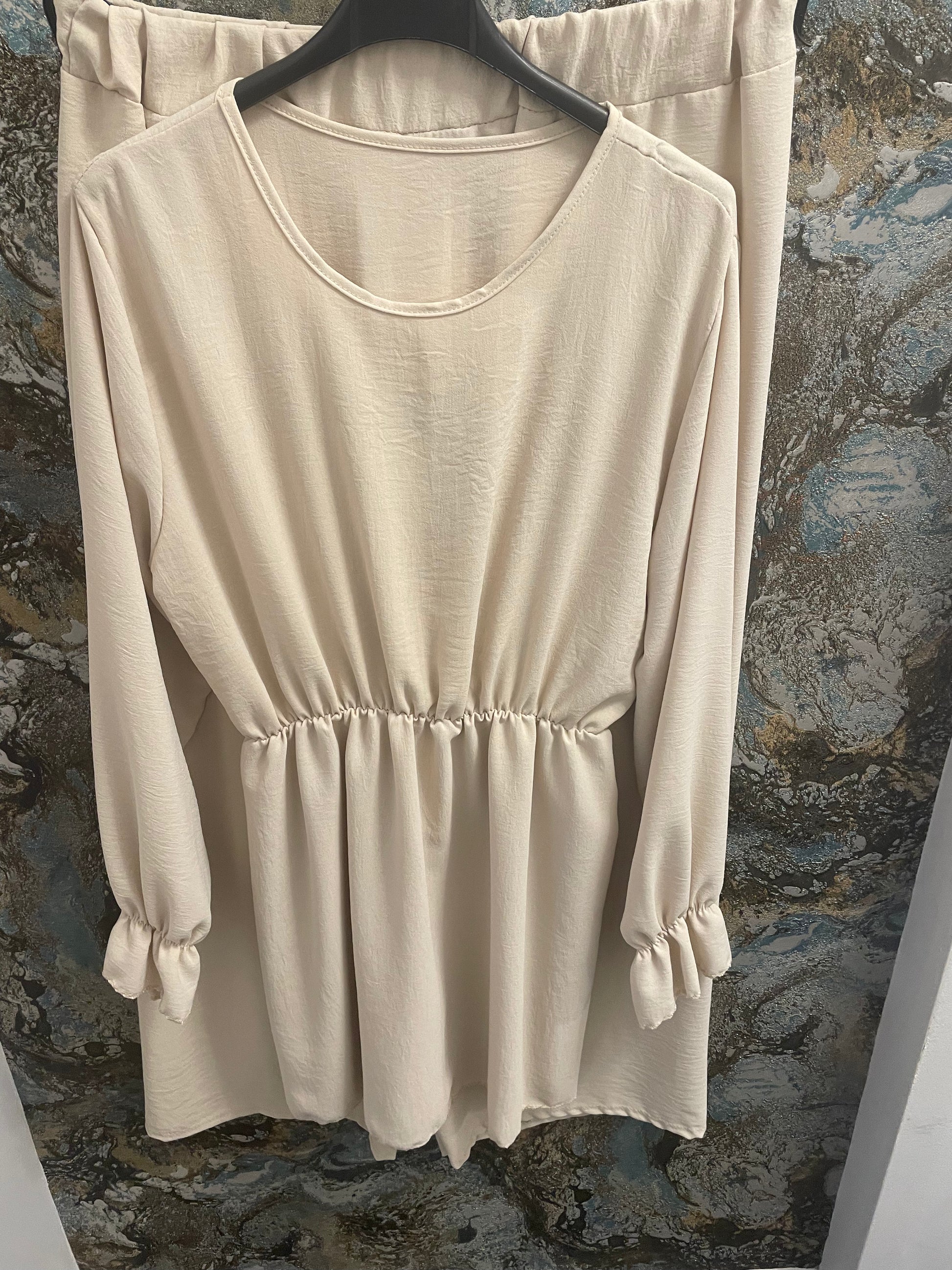 Our simple top and trousers set is the epitome of simplicity and versatility. A great choice for any occasion and allows you to accessorise it to suit your personal style. The breathable and lightweight fabric ensures that you'll feel comfortable all day long, while the simple design offers a clean and sleek look. Whether you're looking for a casual outfit for a day out or a professional look for work, this top and trousers set is a reliable choice that you can always count on.